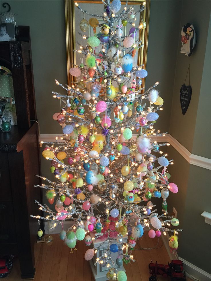 Very pretty Christmas tree transformed into an Easter tree!