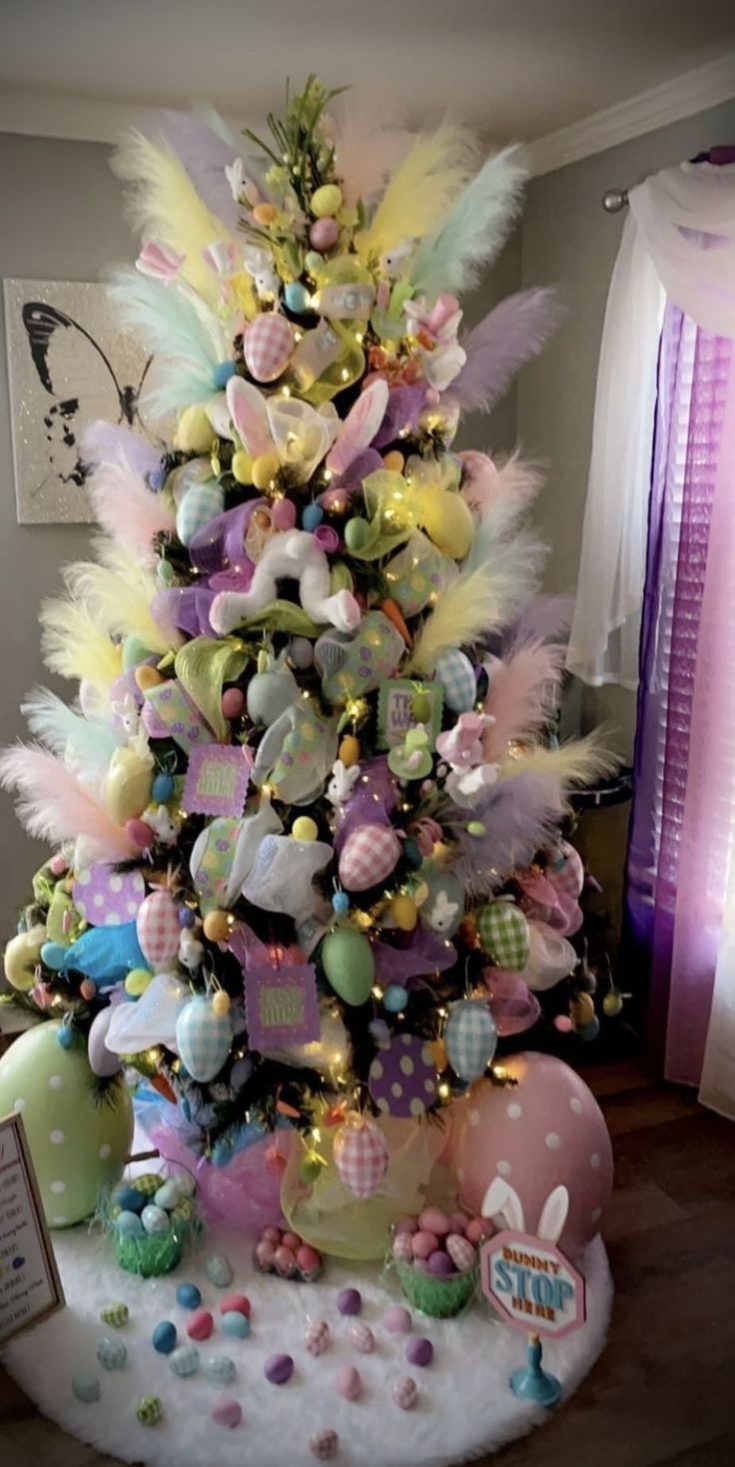 This Easter tree is WAY decorated - never would thought to use feathers as part of the decorations!