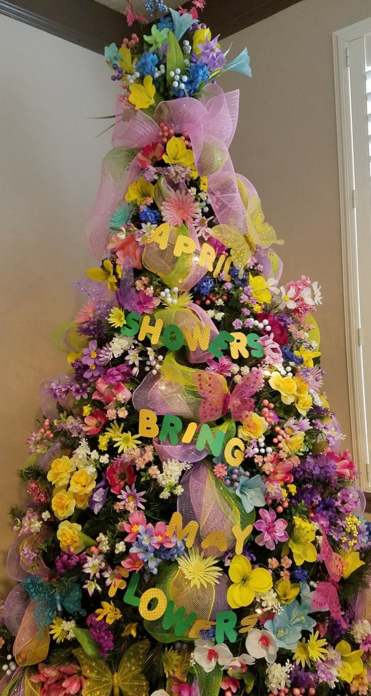 Another cute idea if you don't want JUST an Easter tree is a Spring tree.... I like how they worked the April Showers Bring May Flowers into the decorations!