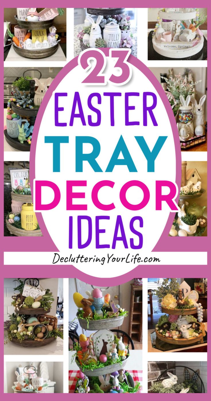 The cutest Easter tray decor ideas to decorate your tiered tray, wooden tray or 3-tier metal galvanized tray for springtime decorating.