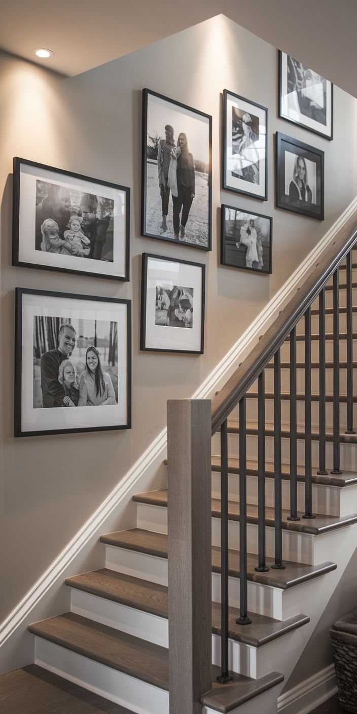 This gallery wall is really pretty - clean and simple! Love the use of black and white family photos for a more cohesive look!