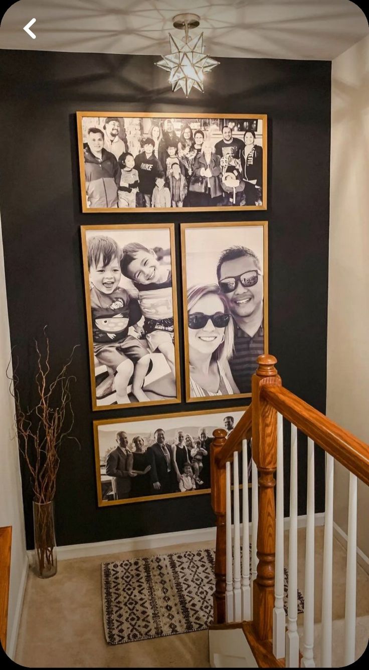 Not many pictures involved in this photo wall layout, but it sure make a STUNNING entryway!